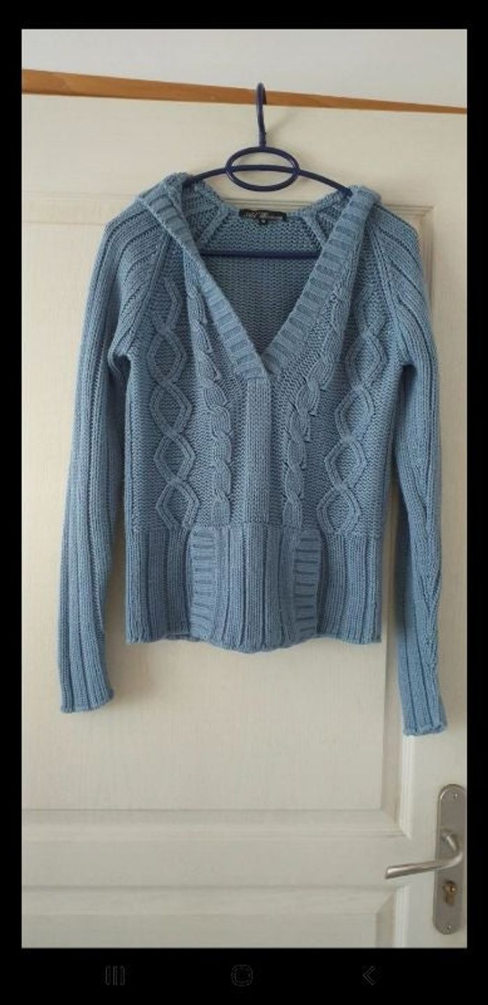 Pull à capuche et poche ventral. Présence de petites bouloches. #Steph85690_taille36