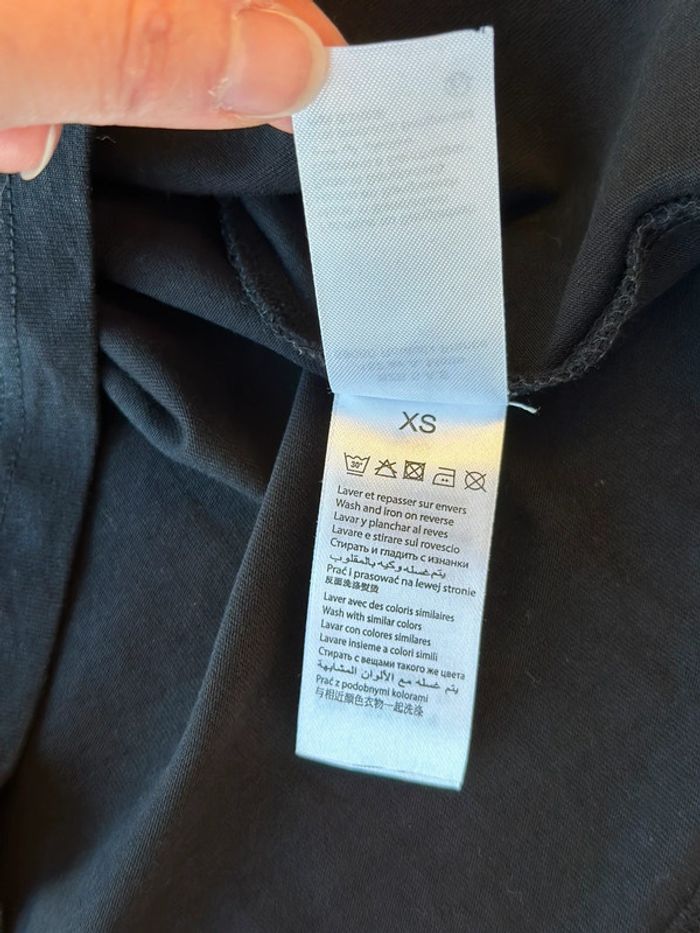 T-shirt neuf avec étiquette, en coton noir orné d’une broderie blanche sur le devant. Il possède des manches courtes et un col rond. La taille XS est parfaitement adaptée. 📏 Je mesure 1m60, 47-48kg, t34,36, p36 🔥 Code promo pour les abonnées Insta @les_pepitesdadeline ❌ Pas de remises sans code promo ⚜️ Forme un lot et bénéficie d’une remise • Trois articles -5% • Cinq articles -10% Cumulables avec le code promo 🔥 💌 N’hésite pas à t’abonner si tu souhaites être la première avertie des prochaines pépites & suis la boutique sur instagram pour ne rien louper.