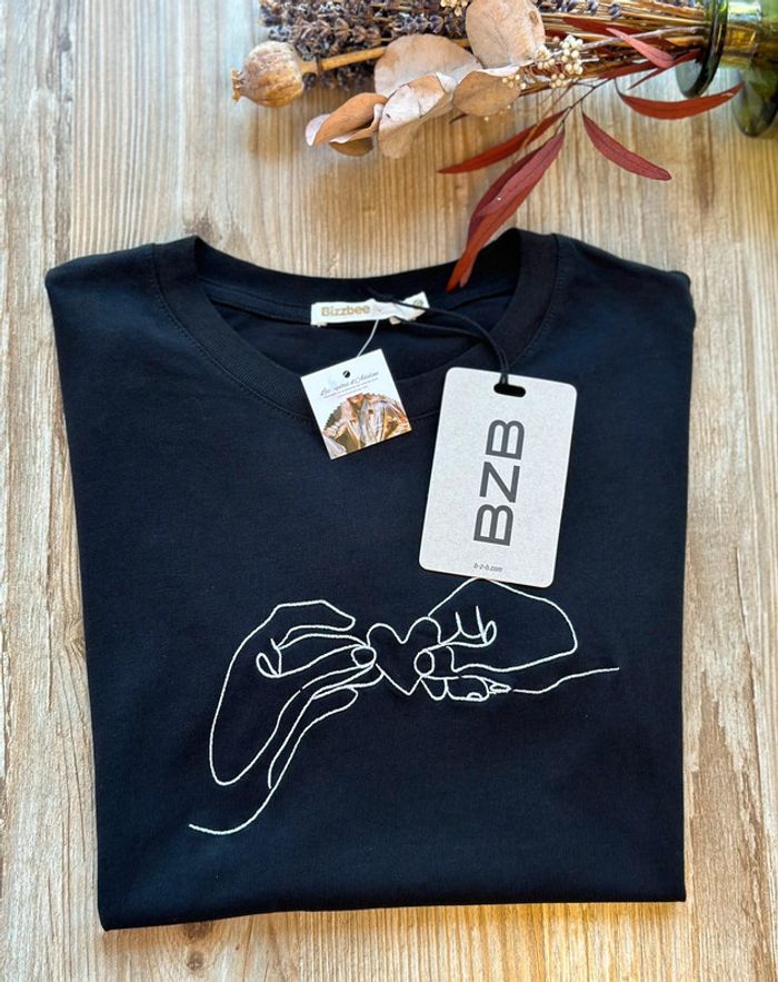 T-shirt noir avec broderie blanche, taille XS - Bizzbee