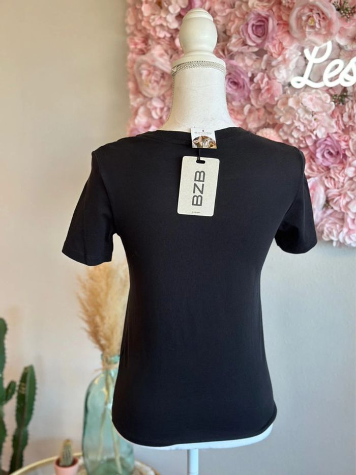 T-shirt noir avec broderie blanche, taille XS - Bizzbee - photo numéro 4