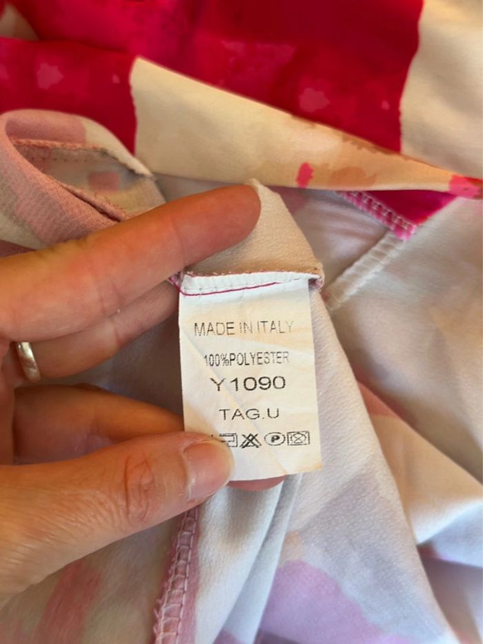 Robe portefeuille imprimé coloré rose et écru – Made in Italy – Taille U - photo numéro 9