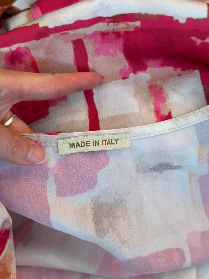 Robe portefeuille imprimé coloré rose et écru – Made in Italy – Taille U - photo numéro 6