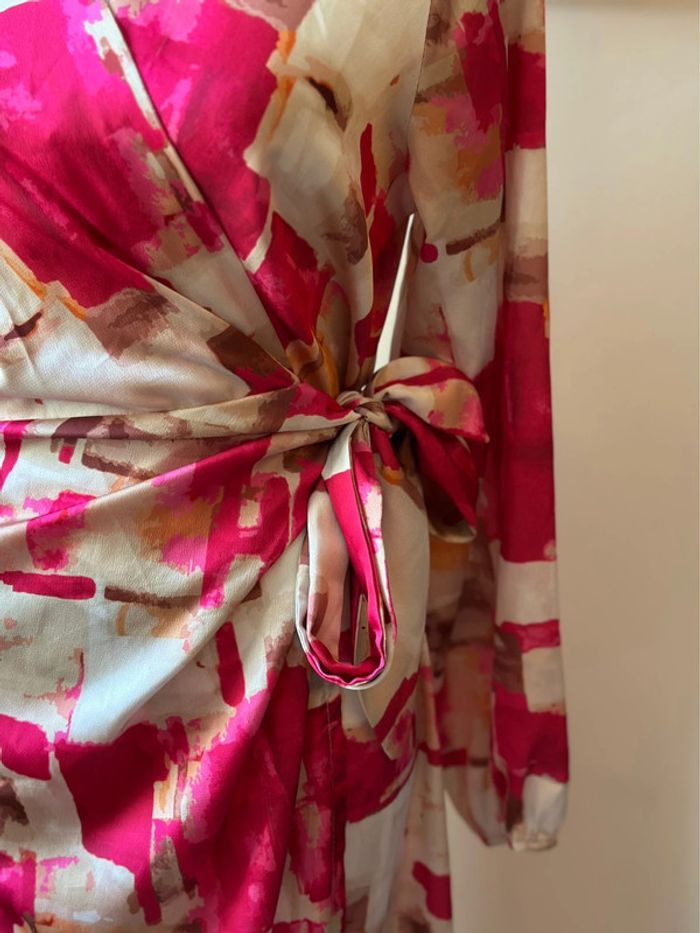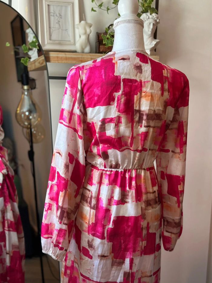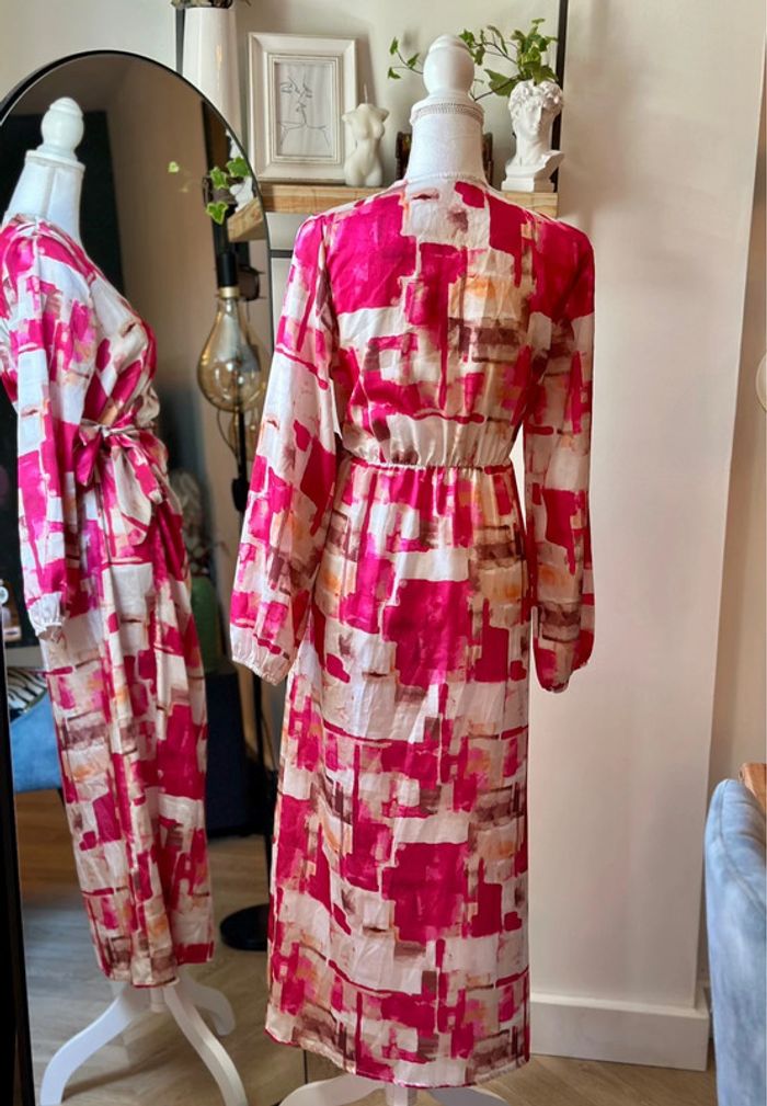 Robe portefeuille imprimé coloré rose et écru – Made in Italy – Taille U - photo numéro 3