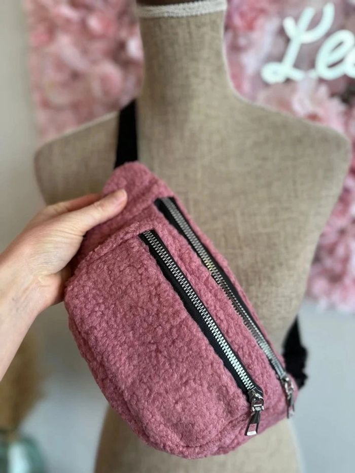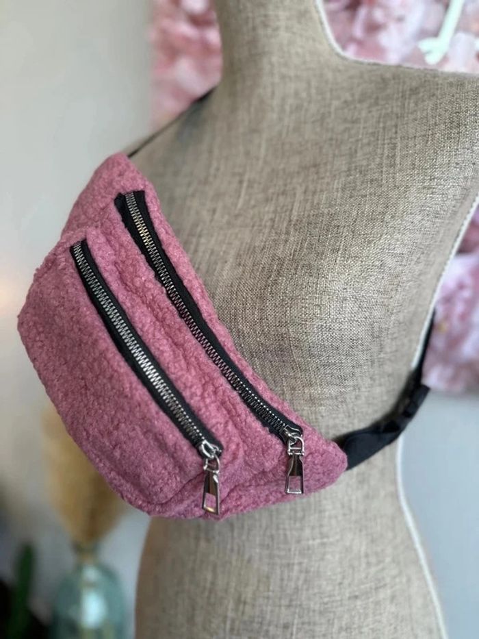 Sac banane rose effet peluche en moumoute - photo numéro 1