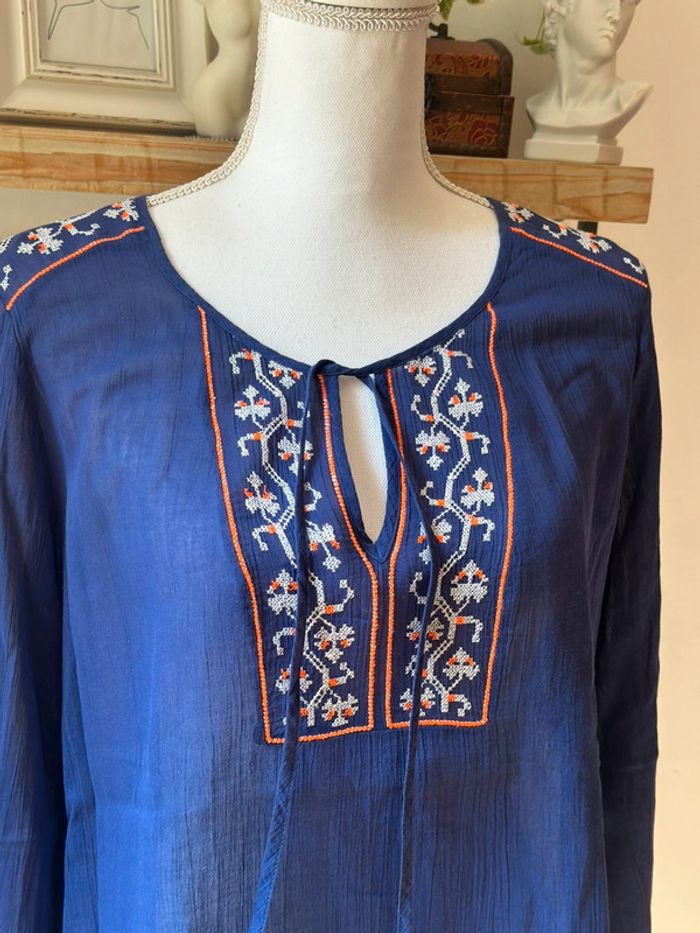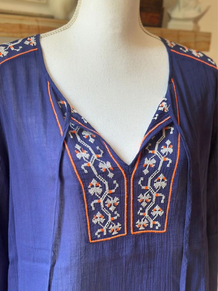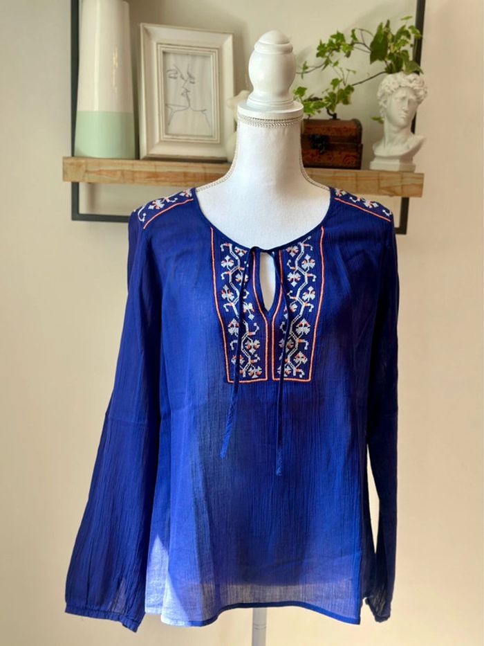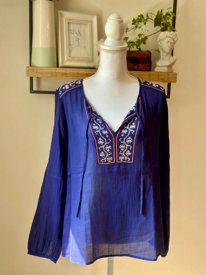 Blouse brodée bohème bleu violine – Promod – Taille 40