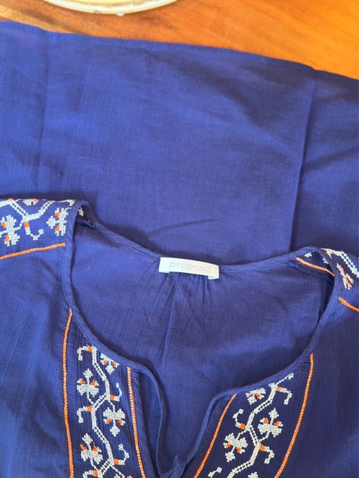 Blouse brodée bohème bleu violine – Promod – Taille 40 - photo numéro 8
