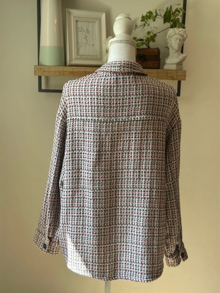 Veste tweed carreaux rouges taille L oversize Pull&Bear - photo numéro 6