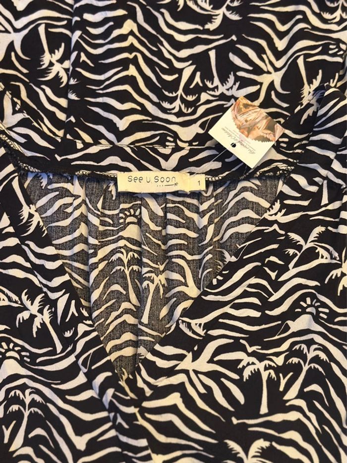 Robe imprimé zèbre palmiers noir et blanc - See U Soon - Taille 36 - photo numéro 3