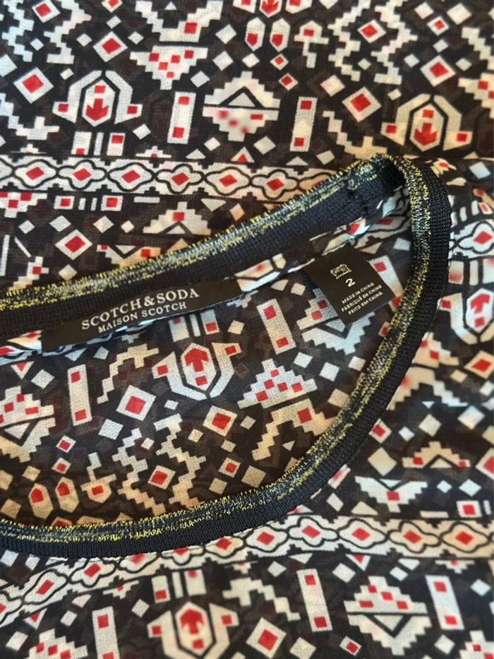 Blouse imprimé graphique noir et rouge - Scotch & Soda - Taille 38 - photo numéro 2