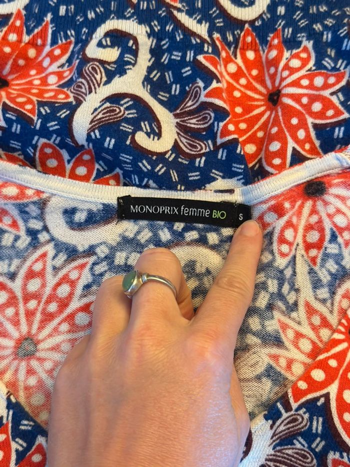Pull col v imprimé en coton bio taille S - Monoprix - photo numéro 3