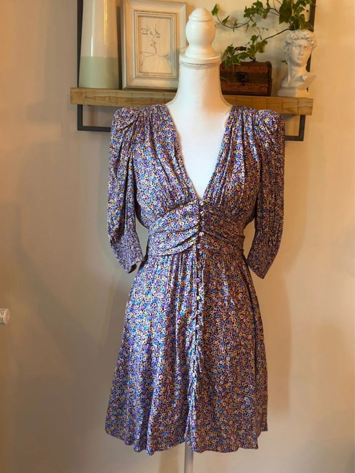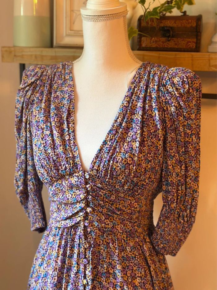 Robe fleurie lila boutonnée Zara – Taille S - photo numéro 1
