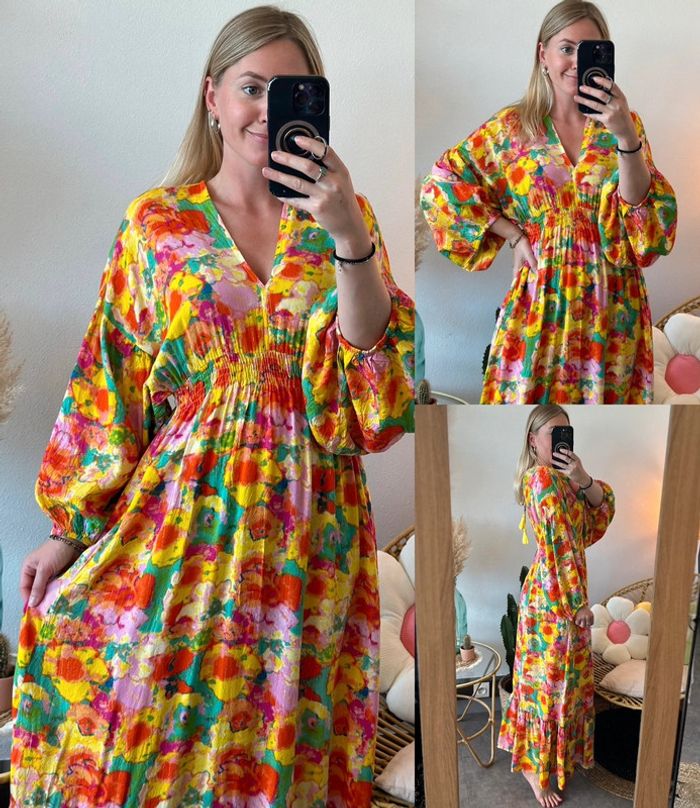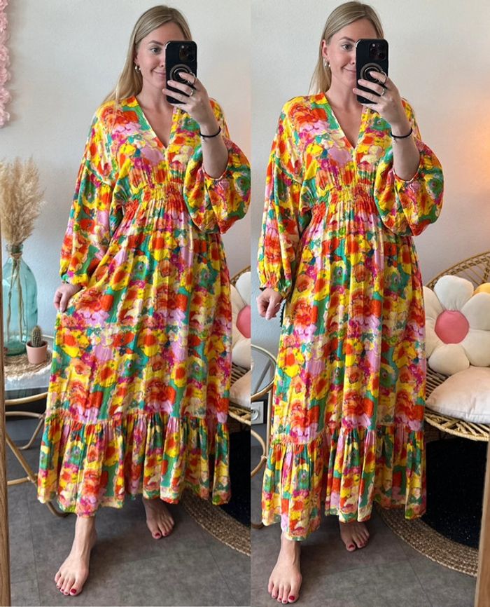 Belle robe longue bohème à motifs fleuris colorés, taille U (36/38) - Gold&Silver