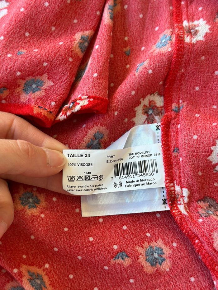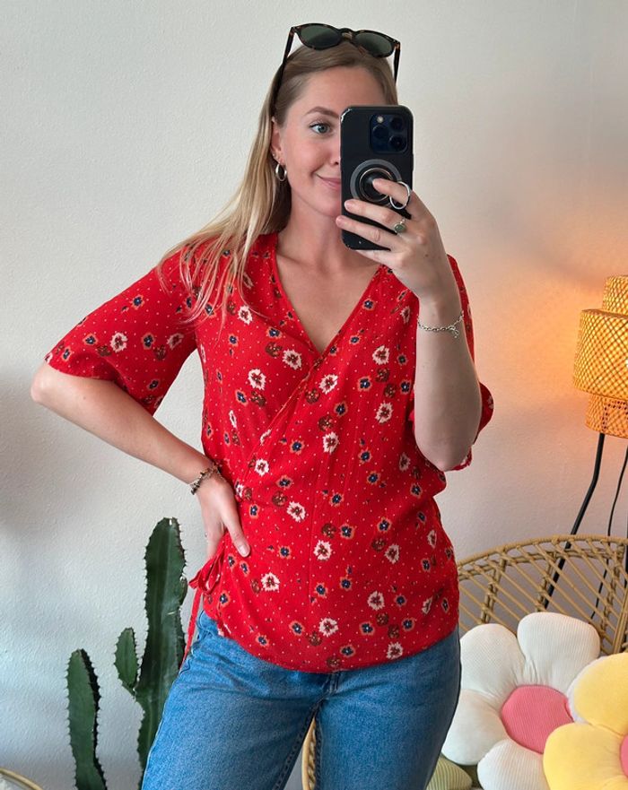 ℹ️ Le prix a récemment été réduit, il est donc fixe et non éligible à une remise. En parfait état, belle blouse rouge avec des motifs fleuris. En viscose. La taille 34 convient bien (ok pour 34/36) grâce aux liens ajustables. 📏 Je mesure 1m60, 47-48kg, t34,36, p36 Plus d’infos dans ma description de profil. ✨ Pssst... Tu craques pour plusieurs de mes articles ? Capture les images des articles de ton choix puis contacte-moi, je me ferais un plaisir de créer une annonce sur demande. 🔥 Code promo pour les abonnées Insta @les_pepitesdadeline ❌ Pas de remises sans code promo ⚜️ Forme un lot et bénéficie d’une remise • Trois articles -5% • Cinq articles -10% Cumulables avec le code promo 🔥 💌 N’hésite pas à t’abonner si tu souhaites être la première avertie des prochaines pépites & suis la boutique sur instagram pour ne rien louper.