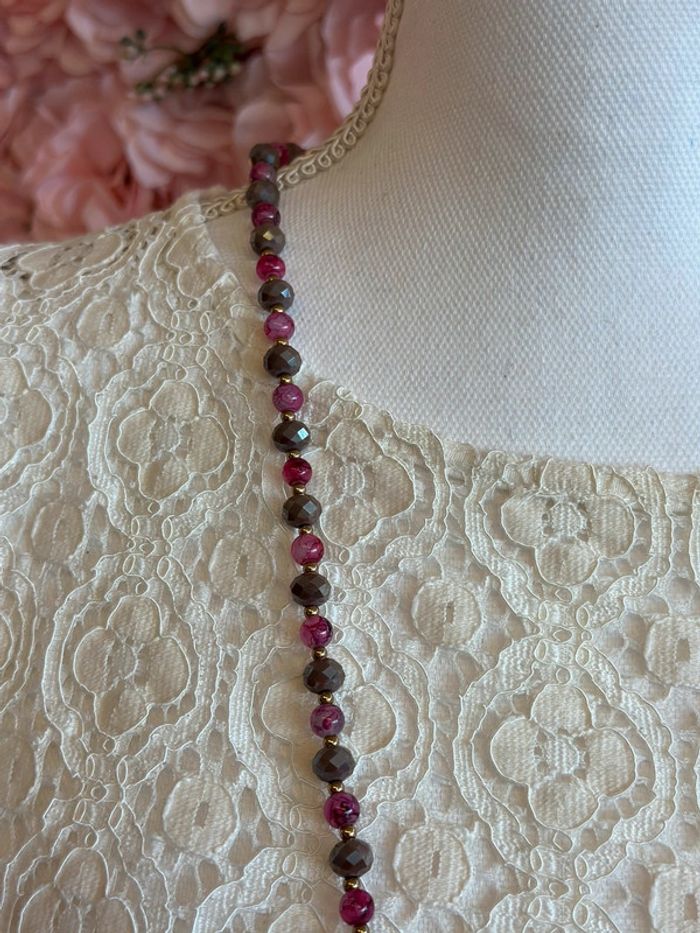 Collier sautoir perles rose fuchsia - photo numéro 4