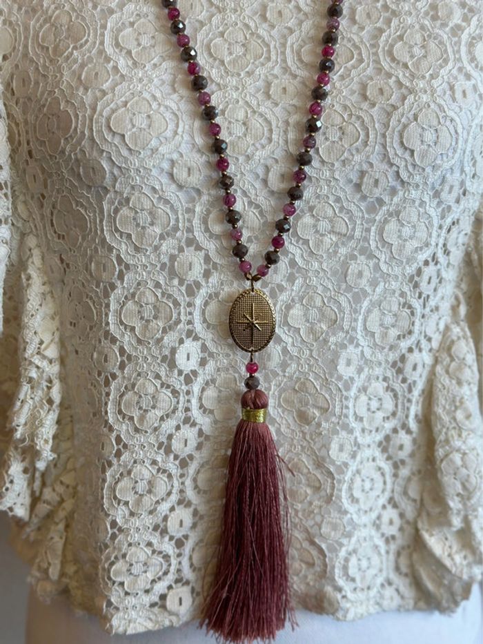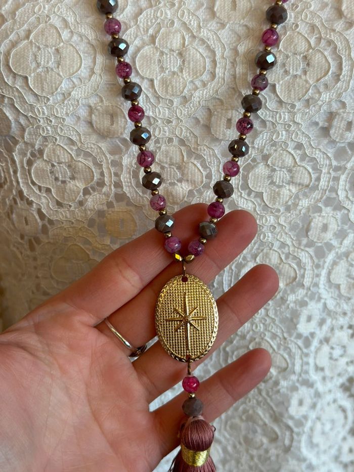 En excellent état, ce joli collier sautoir présente de magnifiques détails en perles aux nuances roses fuchsia, agrémentés de pendentifs dorés. Provenant d'une petite boutique indépendante de bijoux, il a été peu porté. Sa longueur est de 65 cm. 📏 Je mesure 1m60, 47-48kg, t34,36, p36 Plus d’infos dans ma description de profil. ✨ Pssst... Tu craques pour plusieurs de mes articles ? Capture les images des articles de ton choix puis contacte-moi, je me ferais un plaisir de créer une annonce sur demande. 🔥 Code promo pour les abonnées Insta @les_pepitesdadeline ❌ Pas de remises sans code promo ⚜️ Forme un lot et bénéficie d’une remise • Trois articles -5% • Cinq articles -10% Cumulables avec le code promo 🔥 💌 N’hésite pas à t’abonner si tu souhaites être la première avertie des prochaines pépites & suis la boutique sur instagram pour ne rien louper.