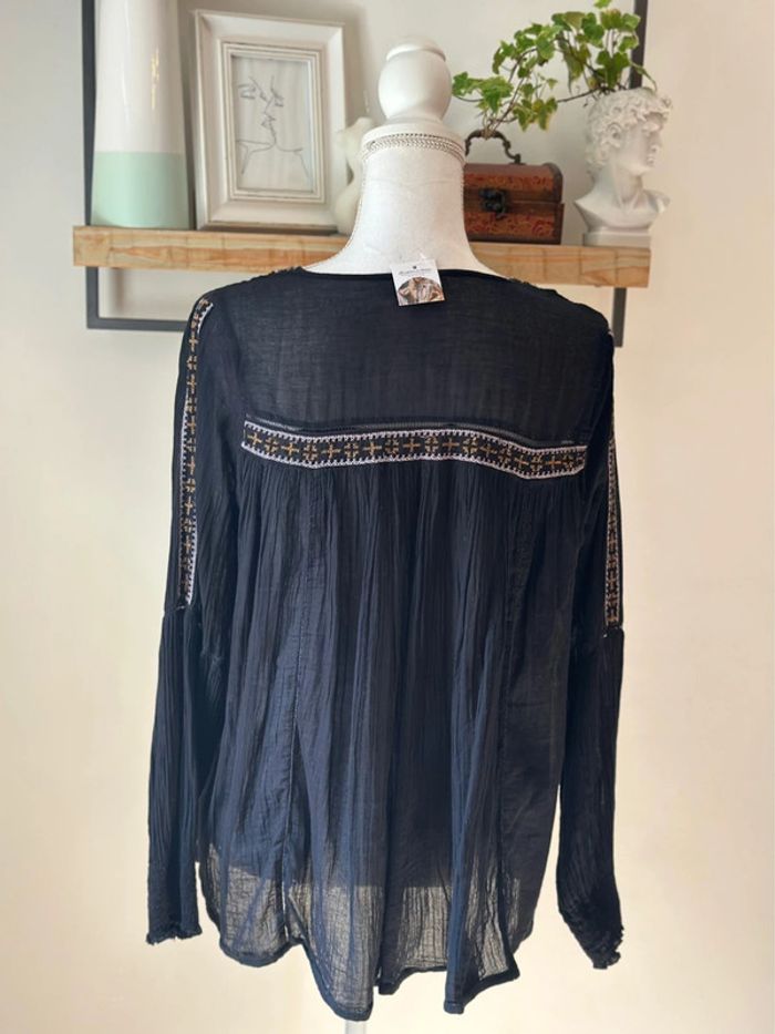 Blouse noire brodée manches longues Sud Express taille M - photo numéro 8