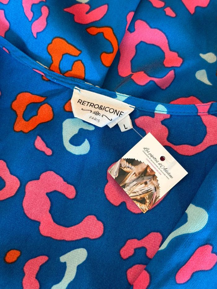 Robe portefeuille imprimé léopard coloré Retro&Icone Paris taille L - photo numéro 1