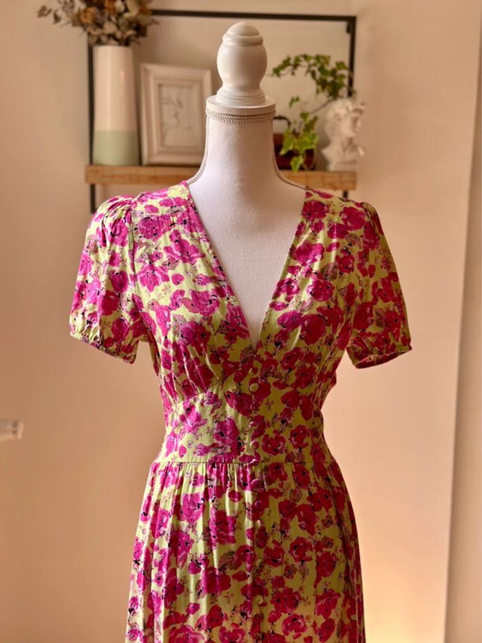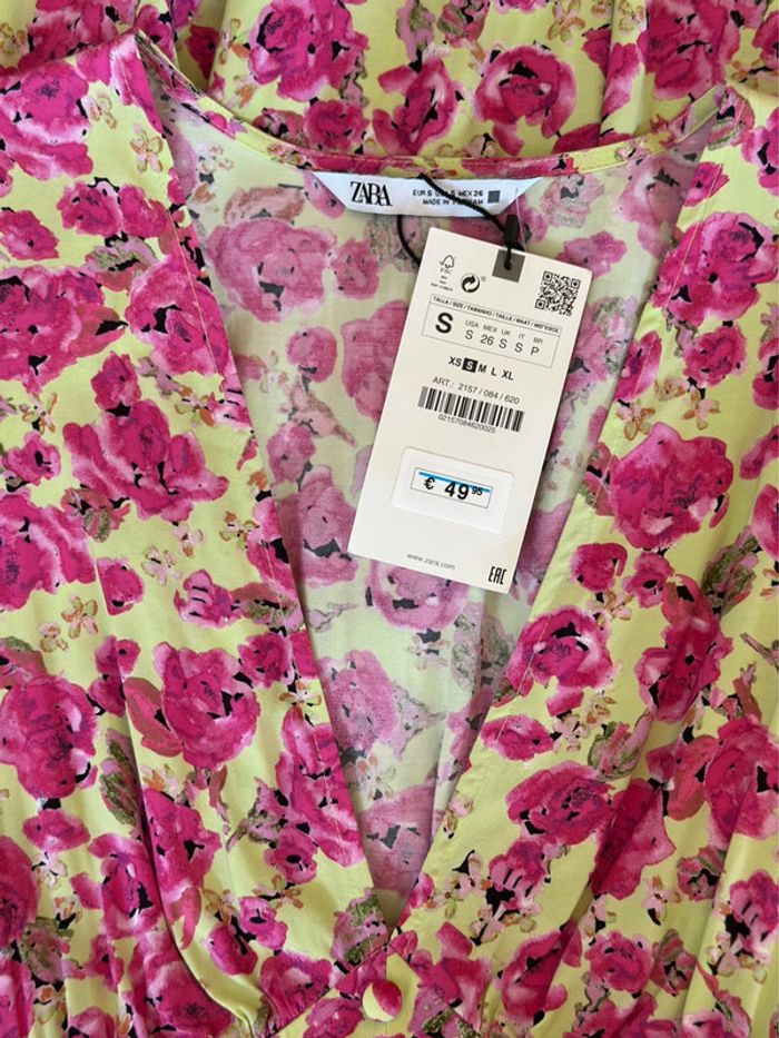 Robe longue fleurie rose et vert clair Zara – Taille S – Neuve - photo numéro 7