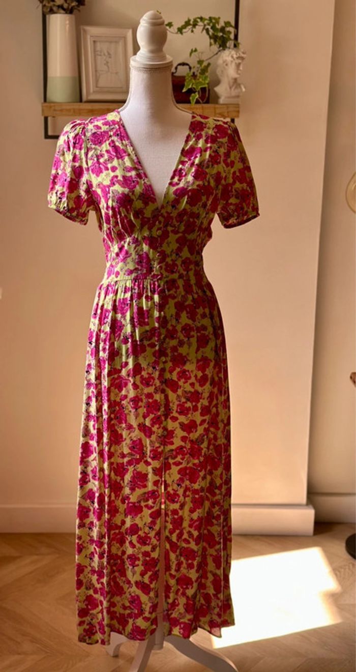 Robe longue fleurie rose et vert clair Zara – Taille S – Neuve - photo numéro 2