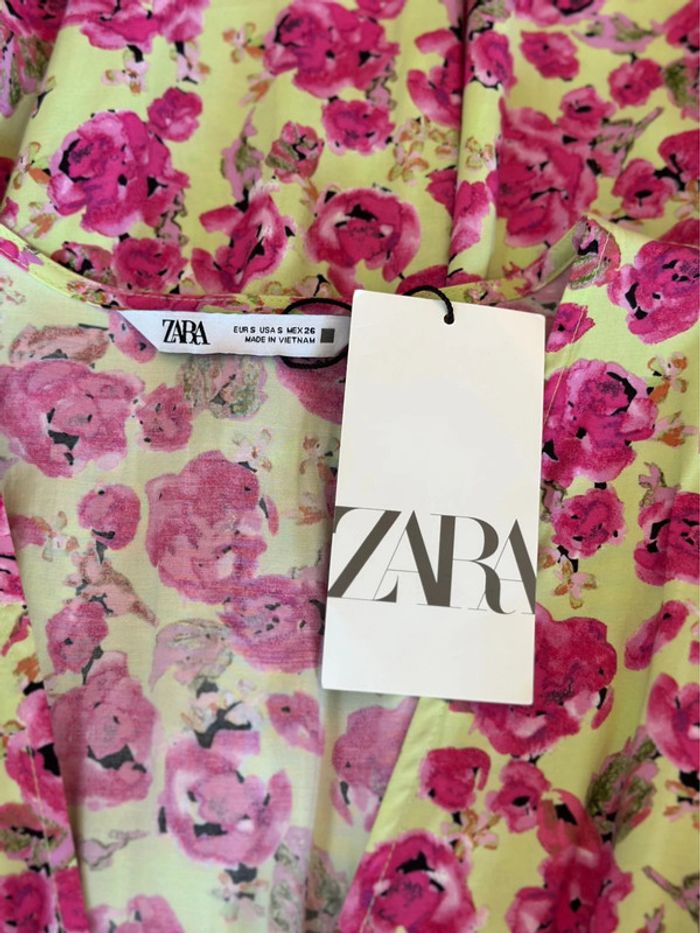 Robe longue fleurie rose et vert clair Zara – Taille S – Neuve - photo numéro 3