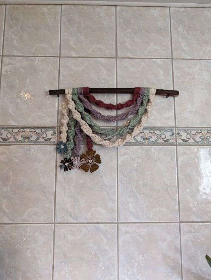 Fait main joli arc en ciel 🌈 en macramé 🌸 Fleur en métal, possibilité de feuille en macramé Création sur demande
