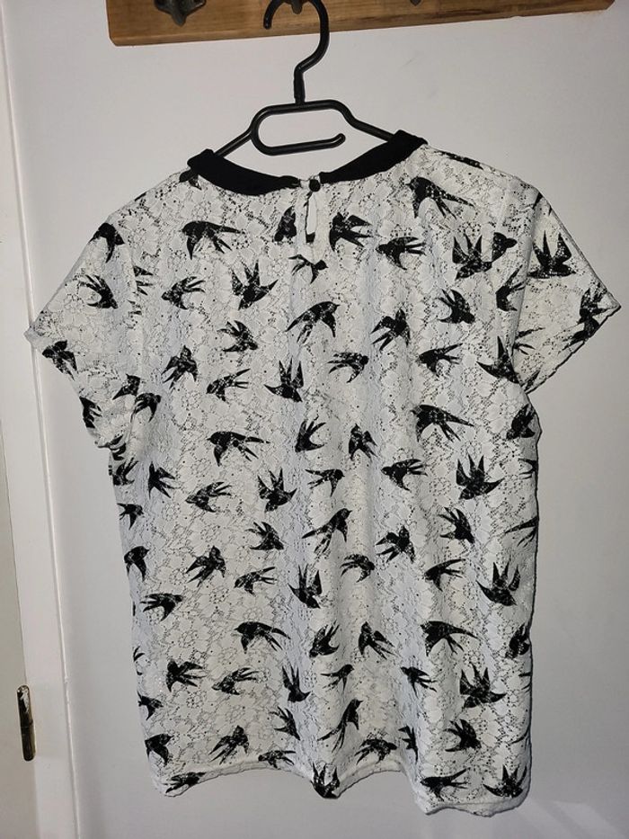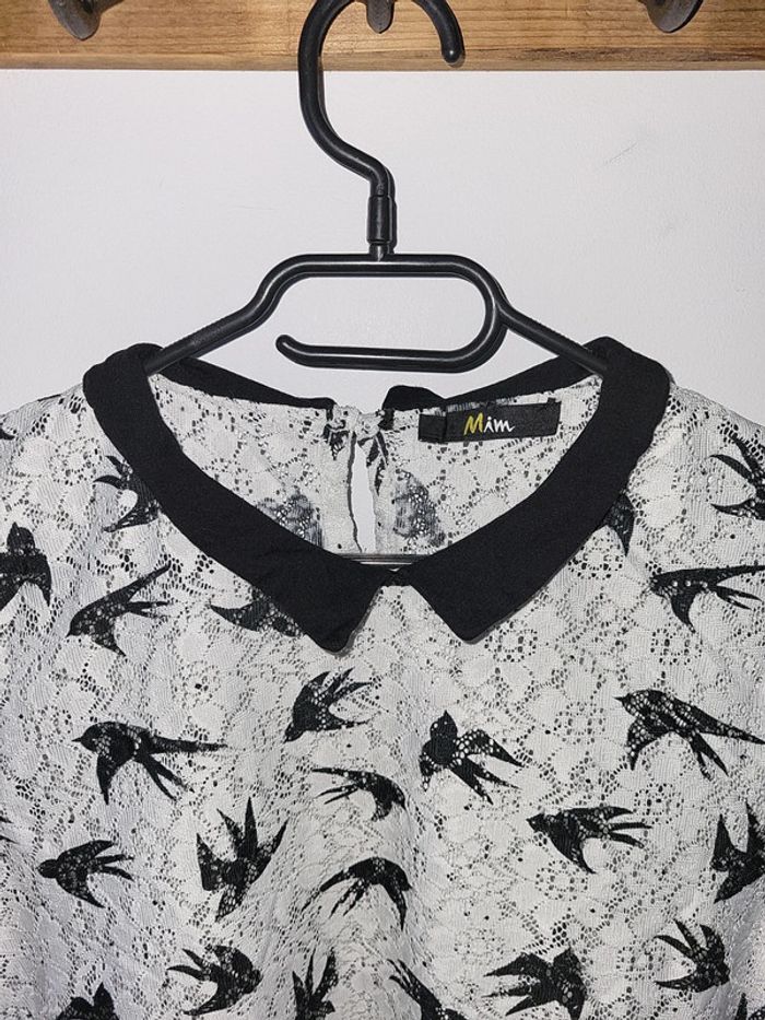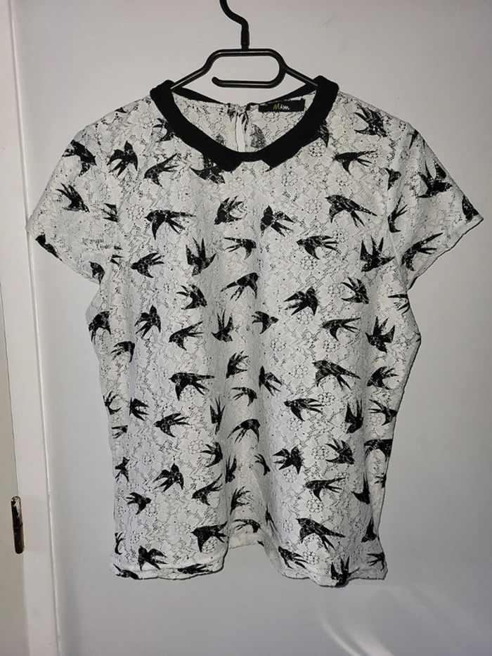 Mim blouse blanche oiseaux col claudine taille 40 L - photo numéro 3