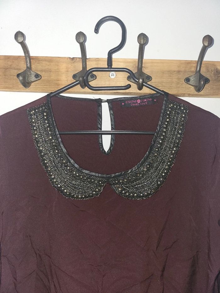 Cache cache blouse bordeaux manches 3/4 col claudine taille 38 - photo numéro 4