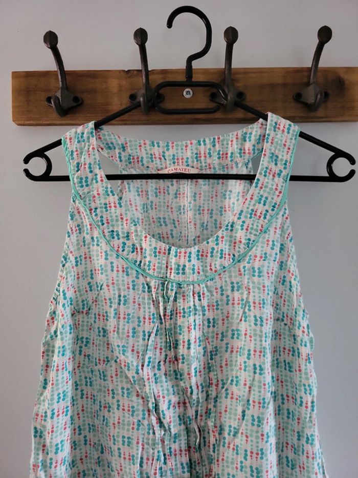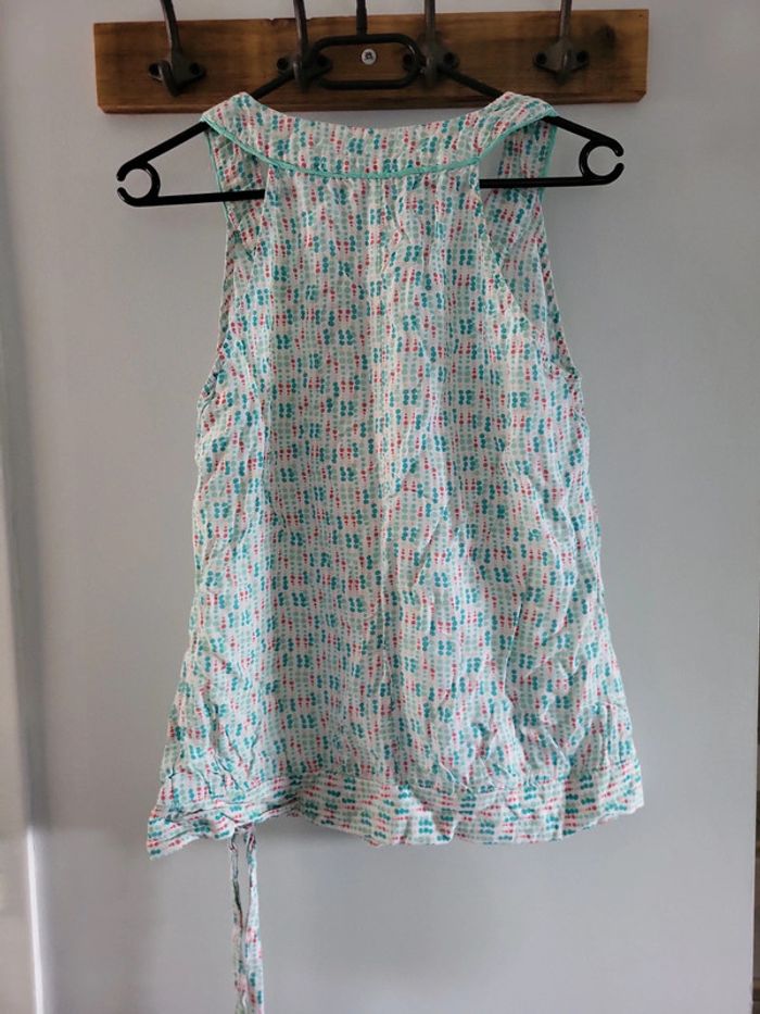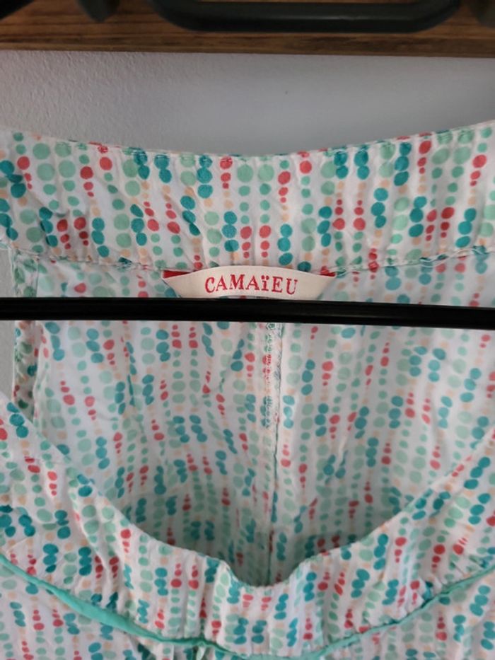 Camaïeu blouse débardeur blanc bleu rouge à pois Taille 40 L - photo numéro 4