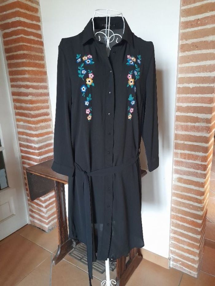 Cette tunique Akoz de toi, longue et brodée, est non doublée avec une ceinture en tissu. Ces manches longues peuvent se relever avec un bouton. Hauteur 95cm