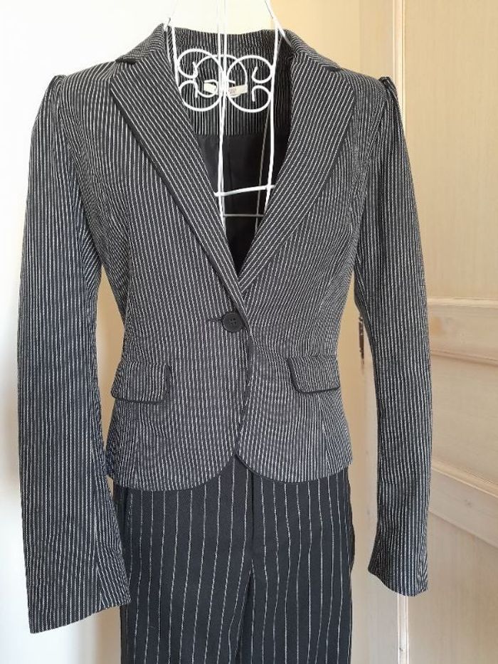 Veste noire à raie courte Mesure épaules 36cm Mesure Taille 38cm Le pantalon mango est dans mon dressing