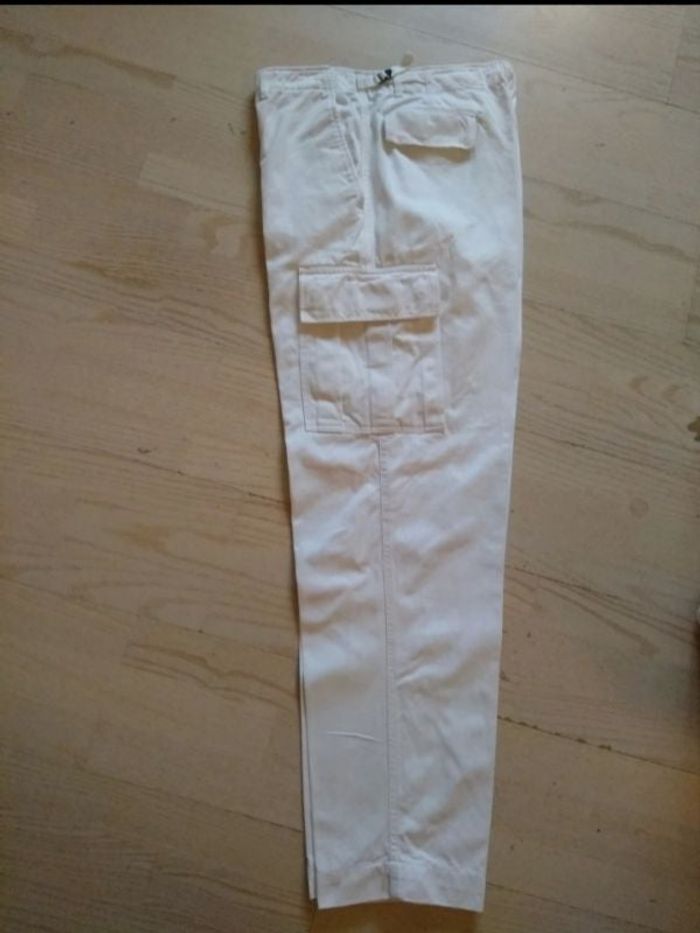 Pantalon VICTOIRE blanc cargo en coton épais 2 poches latérales 2 poches cargo 2 poches à rabat à l arrière Taille 54