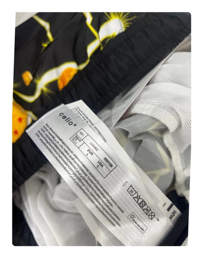 Uniquement par Mondial Relay. Pense à consulter mes autres annonces afin de regrouper les ventes. Short de bain officiel Dragon Ball Z sous licence Toei Animation. Modèle : “LDIDBZ black” – 100% polyester – Doublure filet intérieure. Imprimé Dragon Balls lumineux sur fond noir, très stylé pour l’été ! Produit neuf, jamais porté, avec étiquettes officielles Celio.