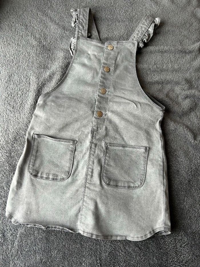 Une robe en jean salopette grise. Taille 8 ans. Tape à l’œil. En très bon état très peu porté. Prix: 5€