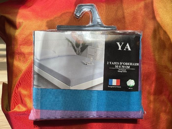 2 taies d'oreilles 50x70cm à carreaux bleu rose et violet en coton