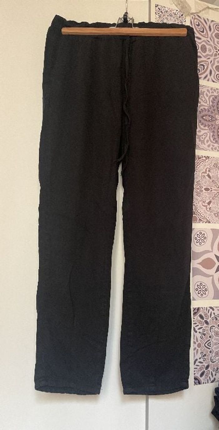 Pantalon large fluide coupe droite, taille élastique avec cordon à nouer marque PAGE ONE