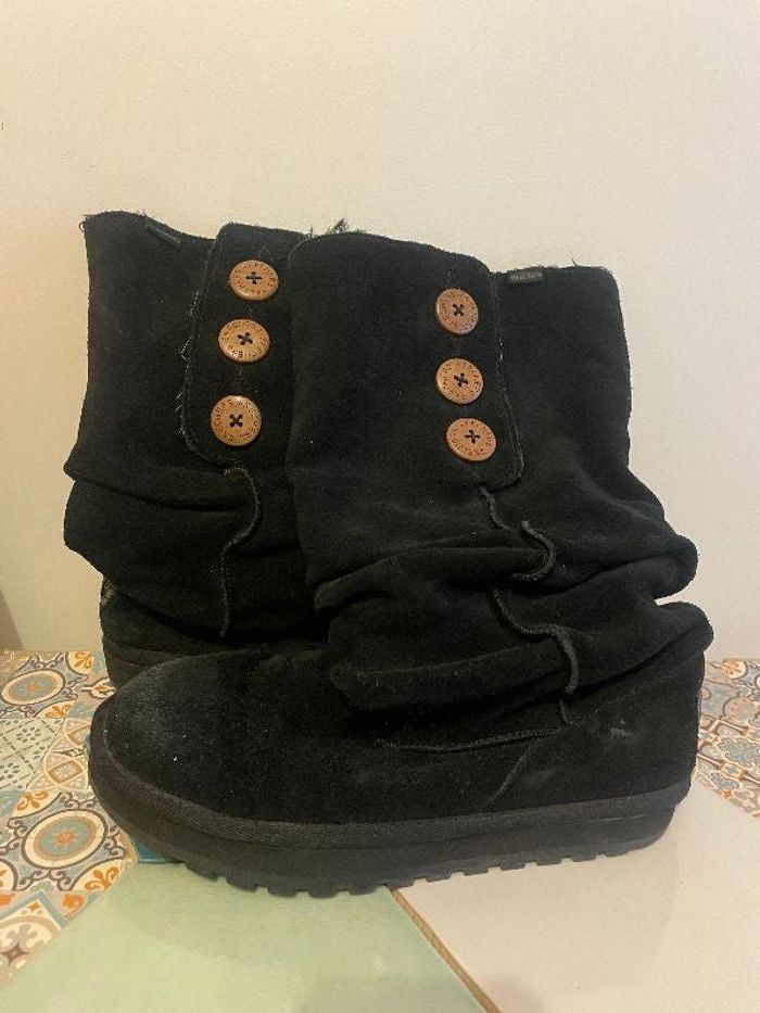 Bottes haute fourrées noires avec 2 boutons sur les côtés