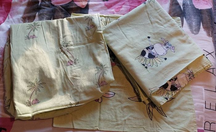 Parure lit pour lit 90×140 Taie d oreillet 58×58 Drap plat 278×170 Drap housse 90×140 Motif vache