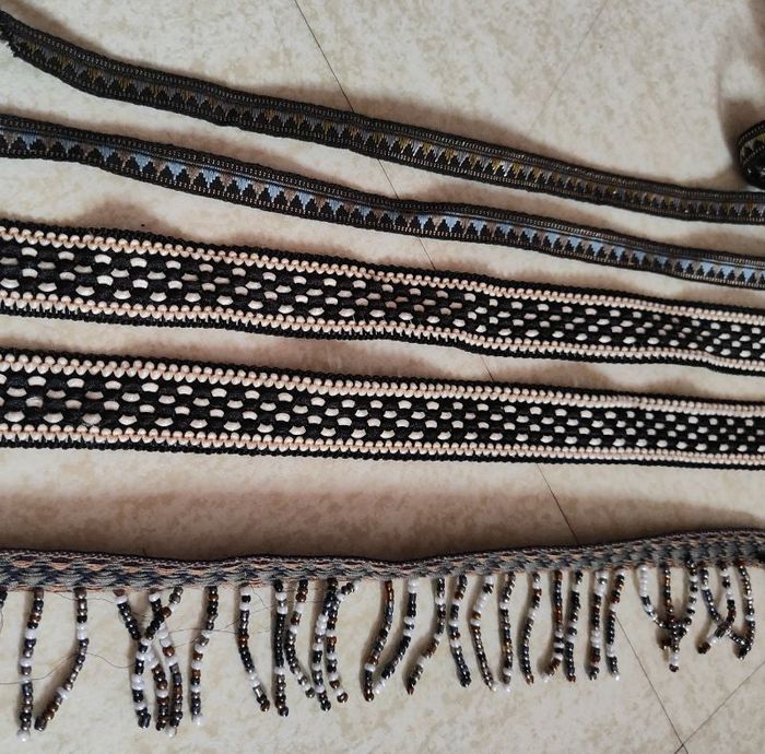 Ruban non élastique idéal pour la couture pour rajouter une petite touche au vêtement ou accessoire. - 2m10 - 1m30 - 2 morceaux (80cm + 82cm) - 35 cm N'hésitez pas à me contacter pour plus d'information