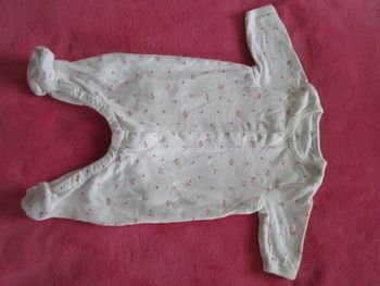 Porté une fois chacun sauf le tout blanc 0 fois. Les 3 premiers s’ouvre devant et le dernier derrière. Taille naissance. J’offre 3 petites paires de chaussettes neuves jamais porté.