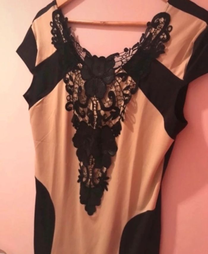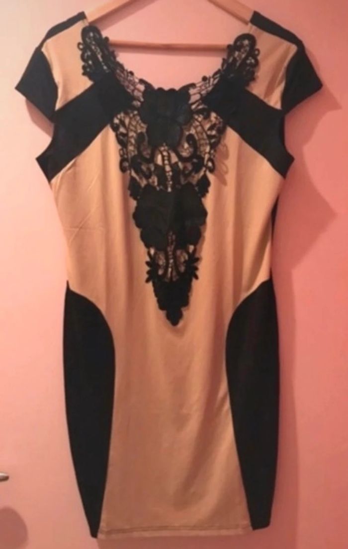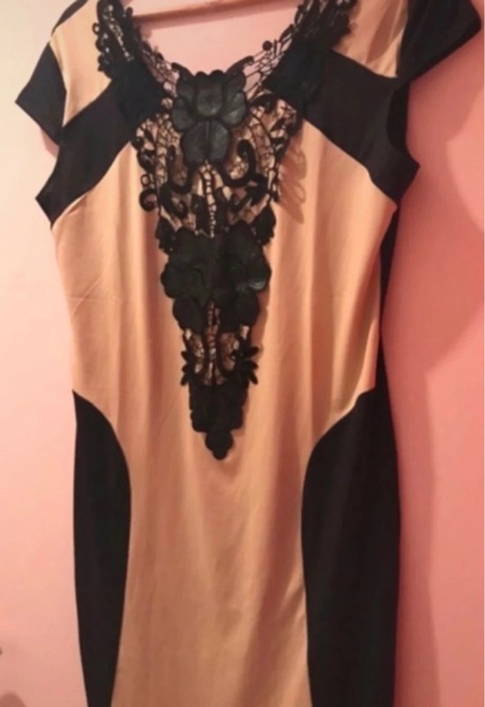 Robe moulante en très bon état . Beige et noir . Dentelle à la poitrine . Sexy et habillée , matière fine .
