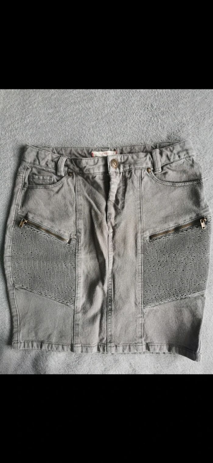 Jupe en jean en coton stretch Esprit taille 34 gris pastel.
