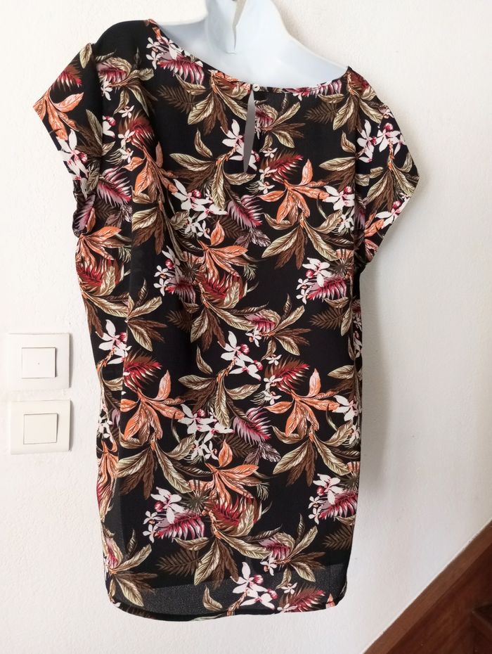 Marque ONLY. En excellent état Fond noir, florale. Forme arrondie Viscose Longueur femme 69 cm