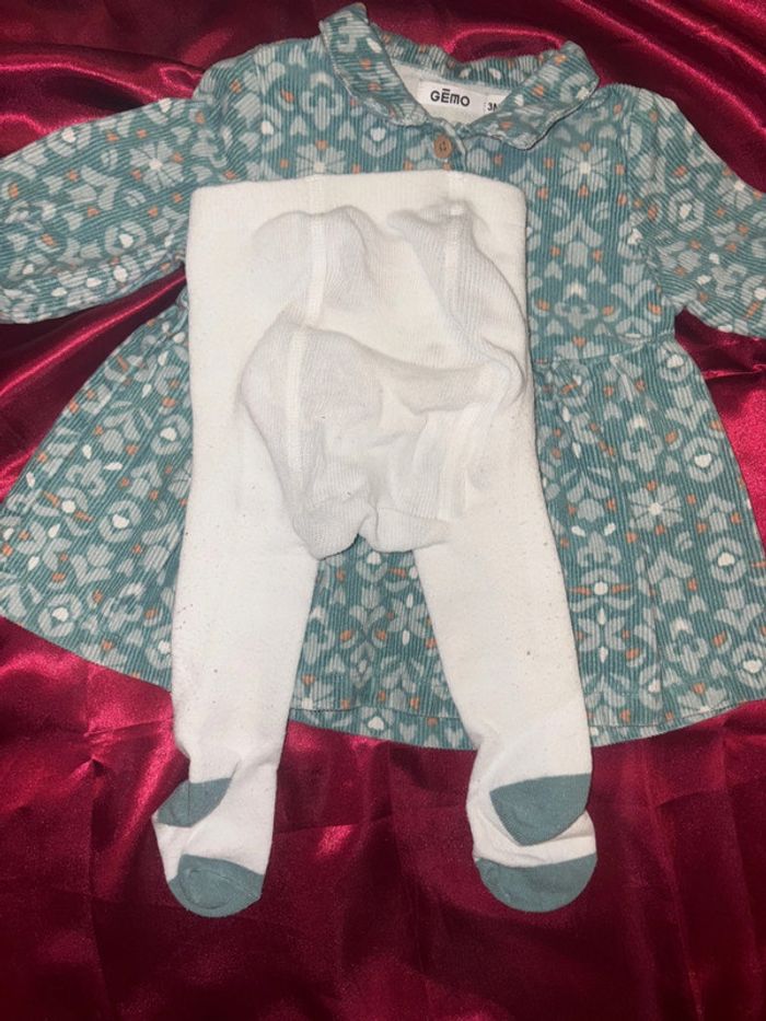 Ensemble petite fille • Gemo • 3 mois Robe en très bon état Collant en bon état, quelques petites bouloches #fahlyaechange #fahlyavetementfille #ensemblegemofille #gemofille3mois