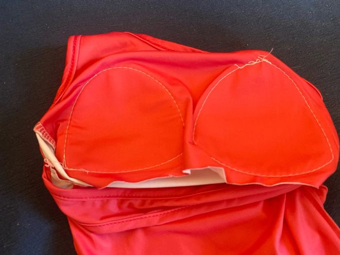 Trop petit pour ma fille qui normalement met cette taille. Elle l’a juste essayé Coussinets au niveau de la poitrine