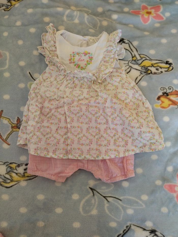Combi short orchestra cœur et fleurs 18 mois - photo numéro 1
