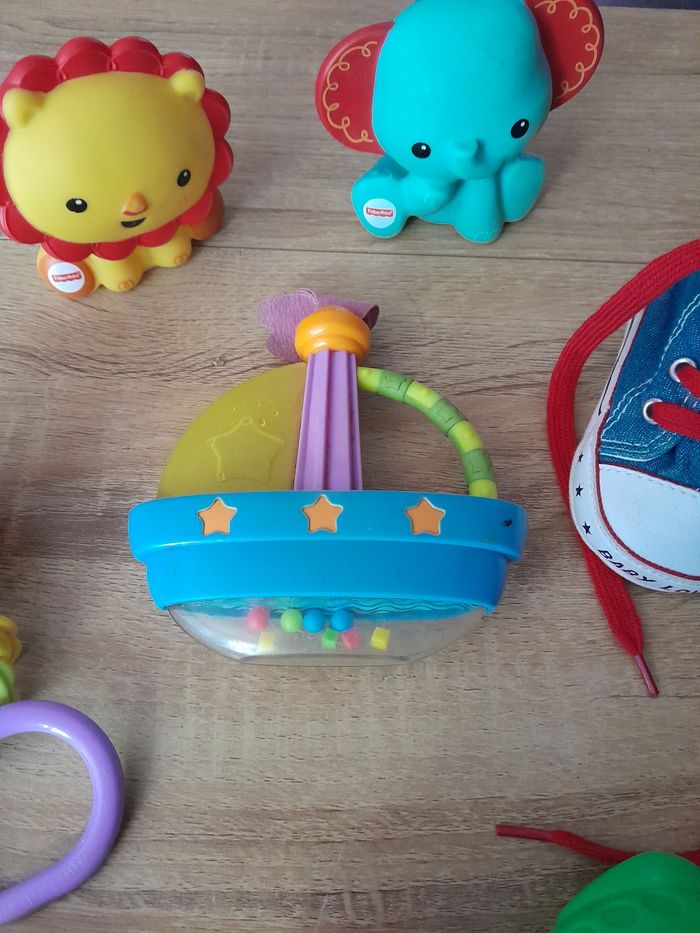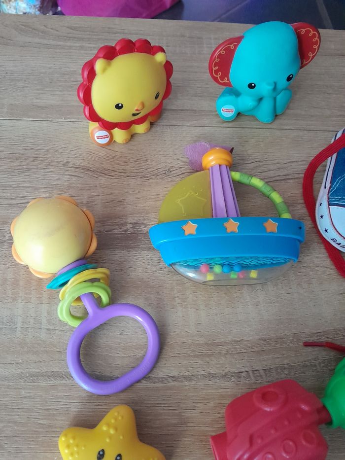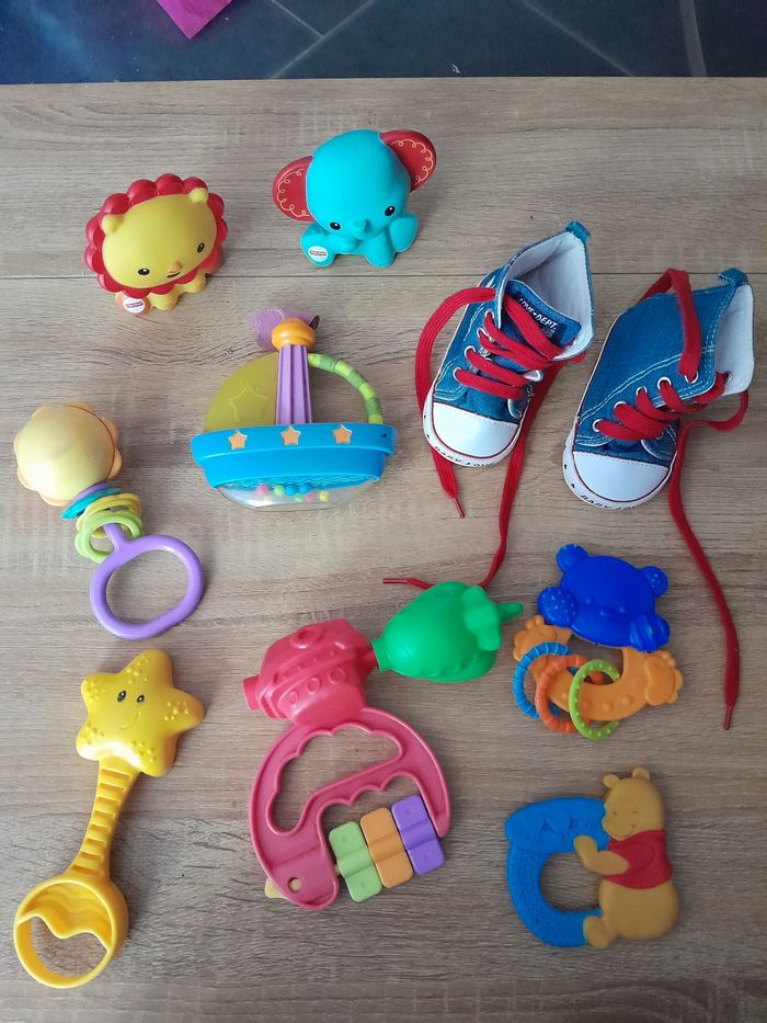 Lot de 10 jouets pour bébé. 9jouets +1 paire de chaussures. 3euros le lot. D'autres lots de jouets de dispo dans mon dressing n'hésitez pas à jeter un coup d'œil ou à me demander.