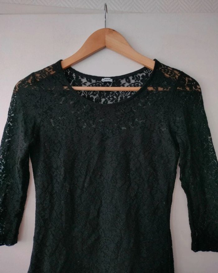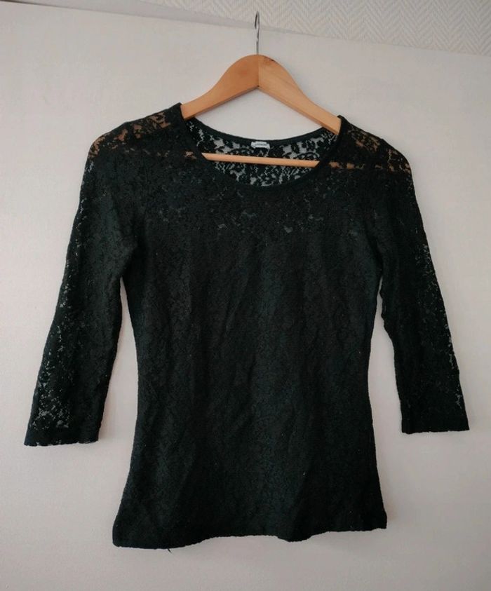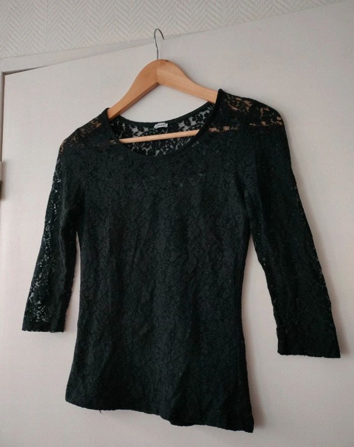 Haut dentelle noire. Opaque au niveau ventre et poitrine. Pimkie taille XS Manches 3/4 #aedenml #aedenquatre #pimkie #toppimkie #hautdentelle