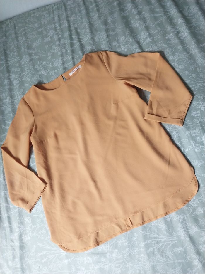 Je vends cette jolie blouse jaune moutarde de la marque Camaïeu. Pas d’étiquette de taille ni de composition, mais elle correspond à une taille S/M. Coupe fluide, plus longue à l’arrière pour un effet moderne et décontracté. Mesures à plat : Épaule à épaule : 38 cm Longueur devant : 60 cm Longueur dos : 66 cm Blouse en très bon état, peu portée. Idéale pour le printemps/été.