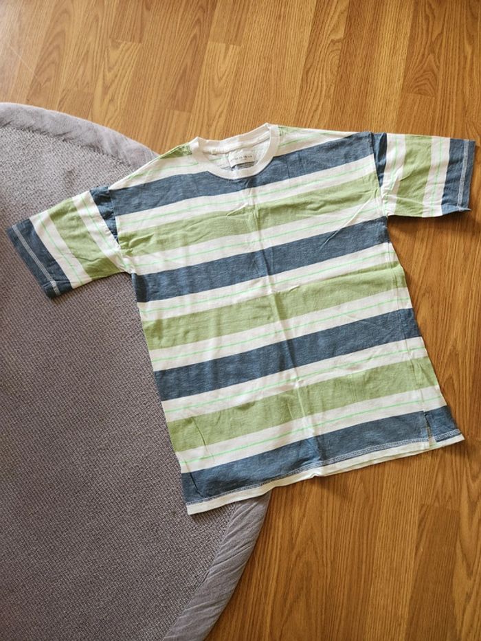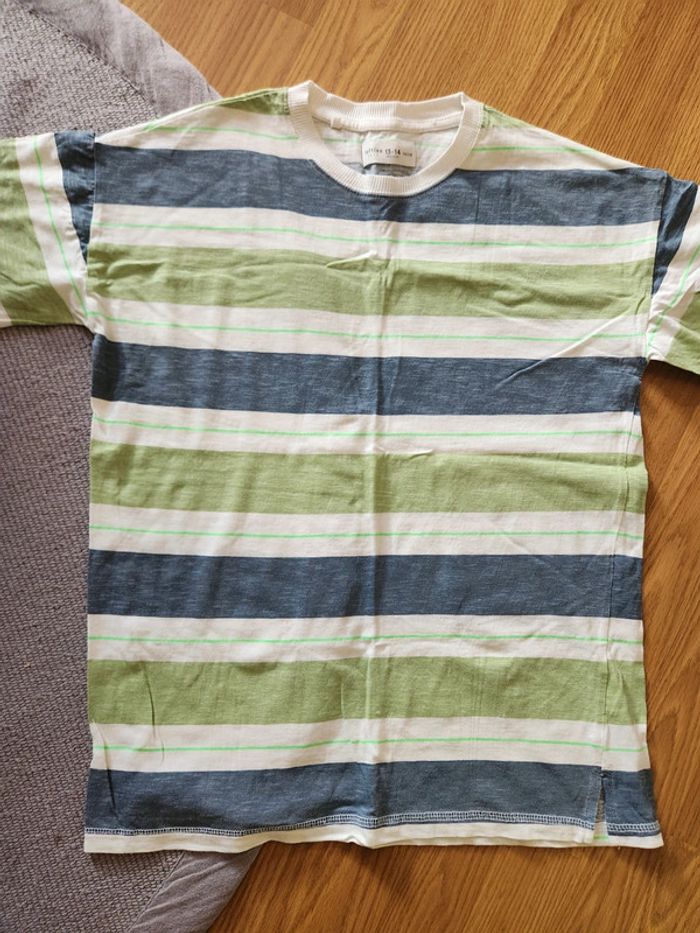 NEUF jamais porté🏷 Tee-shirt en coton à rayures manches courtes pour l'été Taille 13/14 ans▪︎164 cm Couleurs blanc/bleu-gris/vert pistache/menthe