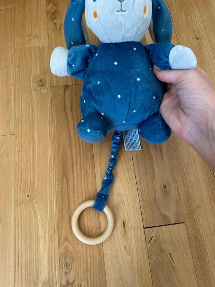 Peluche lapin qui fait de la musique type berceuse. État neuf car reçu en double